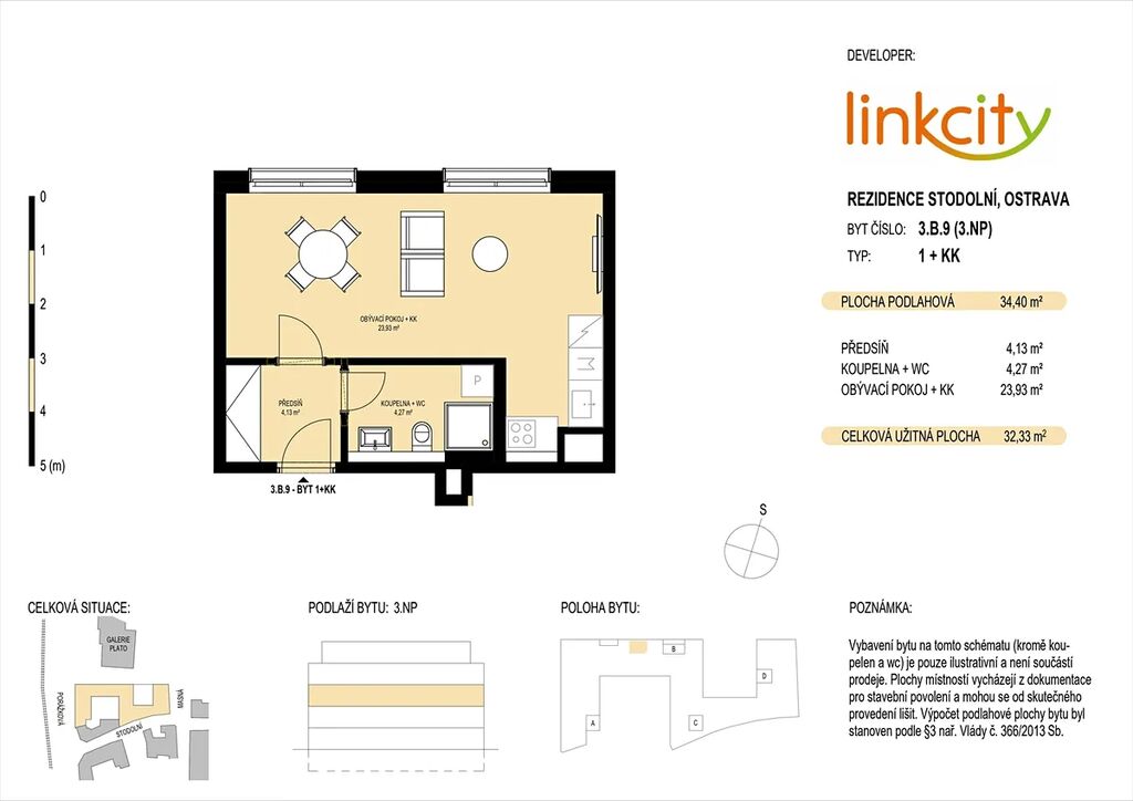 - dispozice 1+kk s 34,4 m2 podlahové plochy