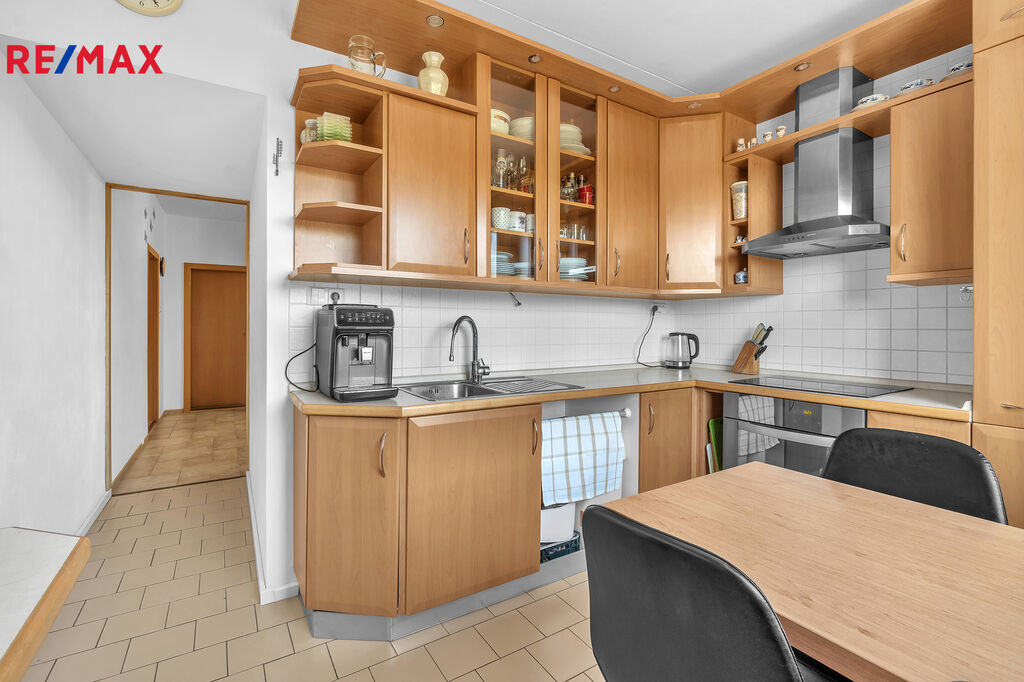 Byt prošel v roce 2003 kompletní rekonstrukcí - zděné bytové jádro, elektroinstalace, rozvody vody, podlahy, vnitřní dveře včetně obložek i kuchyň. Nedělní oběd můžete uvařit na sklokeramické varné desce, nádobí pak umyjete buď ručně, nebo v myčce, kterou si do kuchyně pořídíte. Prostor pro ni byl v kuchyni při rekonstrukci vytvořen.