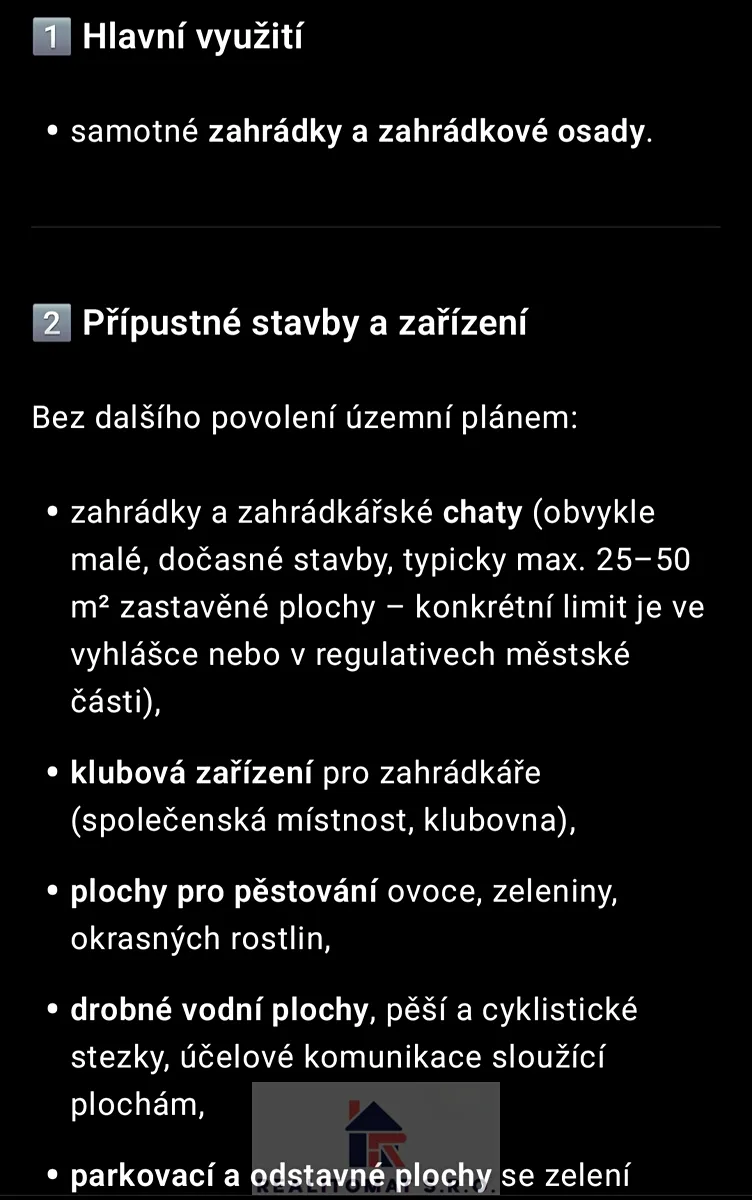 Část pozemku kde stojí chata ve svahu s krásným výhledem je dle územního plánu v PZO - Zahrádky a zahrádkové osady.
