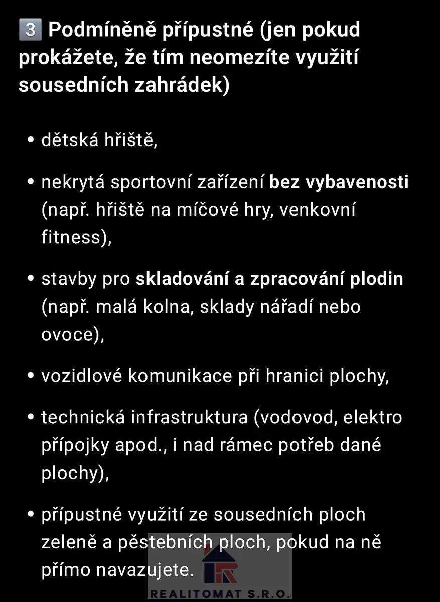 Možnost přestavby či rekonstrukce chatky k rekreačnímu nebo trvalému bydlení.