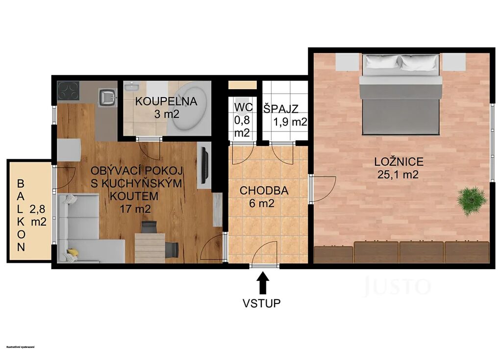 V zastoupení majitele nabízíme k pronájmu cihlový byt o dispozičním řešení 2+kk na ul. Dvořákova v Písku. Původní dispozice 1+1 z roku 1939 byla důmyslně v rámci celkové rekonstrukce bytu v roce 2019 předělána na 2+kk. Byt je v 1. nadzemním podlaží domu. Při vstupu do bytu se nachází předsíň o výměře 5,91 m². Na levé straně bytu s orientací do zahrad je obývací pokoj s kuchyňským koutem o výměře 17 m². Z obývacího pokoje je vstup na příjemný balkon, který je orientován do zahrady. Koupelna je s rohovou vanou a místem pro pračku. Ložnice o výměře 25 m² se nachází na pravé straně bytu s orientací do ul. Dvořákova, zde bylo v rámci rekonstrukce umístěno kvalitní plastové okno s troj-sklem. Vnitřní špalety oken jsou zateplené polystyrenem tl. 2 cm. V čele bytu je samostatná toaleta a praktický špajz. V rámci rekonstrukce bylo dále provedeno zateplení podlah obou místností (EPS tl. cca 8 cm), díky čemuž nejsou studené podlahy. V celém bytě jsou nové SDK podhledy s parobrzdou a zateplením, zároveň tím došlo ke značnému zmenšení vytápěného prostoru a zajištění hlukové izolace. Na svislé stěně do ulice a stěně do zahrady je namontována SDK předstěna opět s parobrzdou a vnitřním zateplením. Vytápění je zajištěno el. panely. Parkování je možné před domem na veřejné komunikaci. K bytu náleží spoluvlastnický podíl na společné zahradě. Byt bude nezařízený, jen kuchyňská linka. Volné od prosince 1.12.2025. Majitel si vyhrazuje právo vybrat zájemce, se kterým uzavře Nájemní smlouvou.