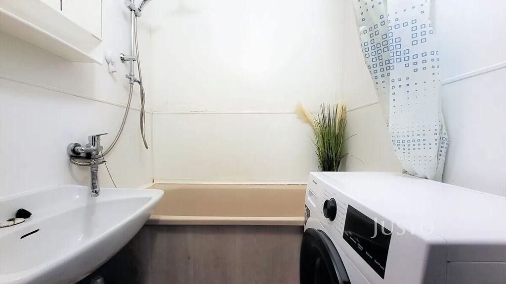 Při vstupu do bytu je předsíň o výměře 4,5 m², odtud je vstup na WC a do samostatné koupelny. V kuchyni o výměře 8,30 m² je nová kuchyňská linka. Obývací pokoj a ložnice mají stejnou výměru a to 16,40 m². Byt bude vybaven jen kuchyňskou linkou a gaučem.
