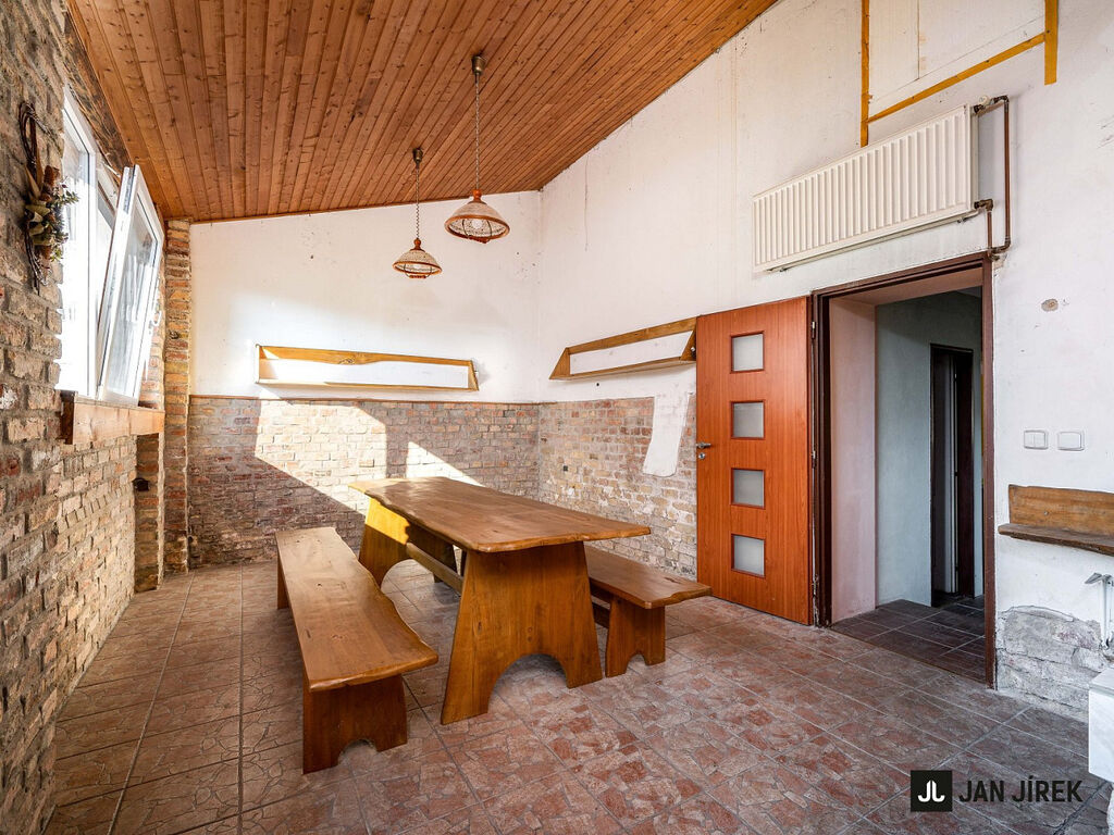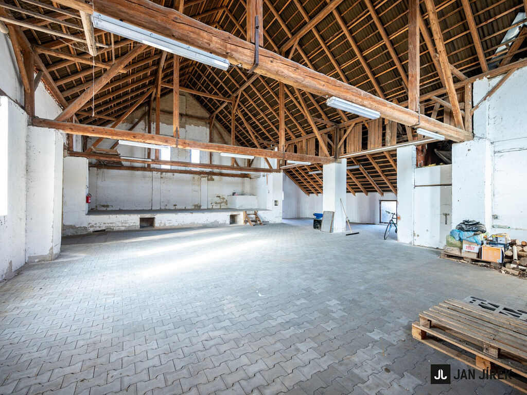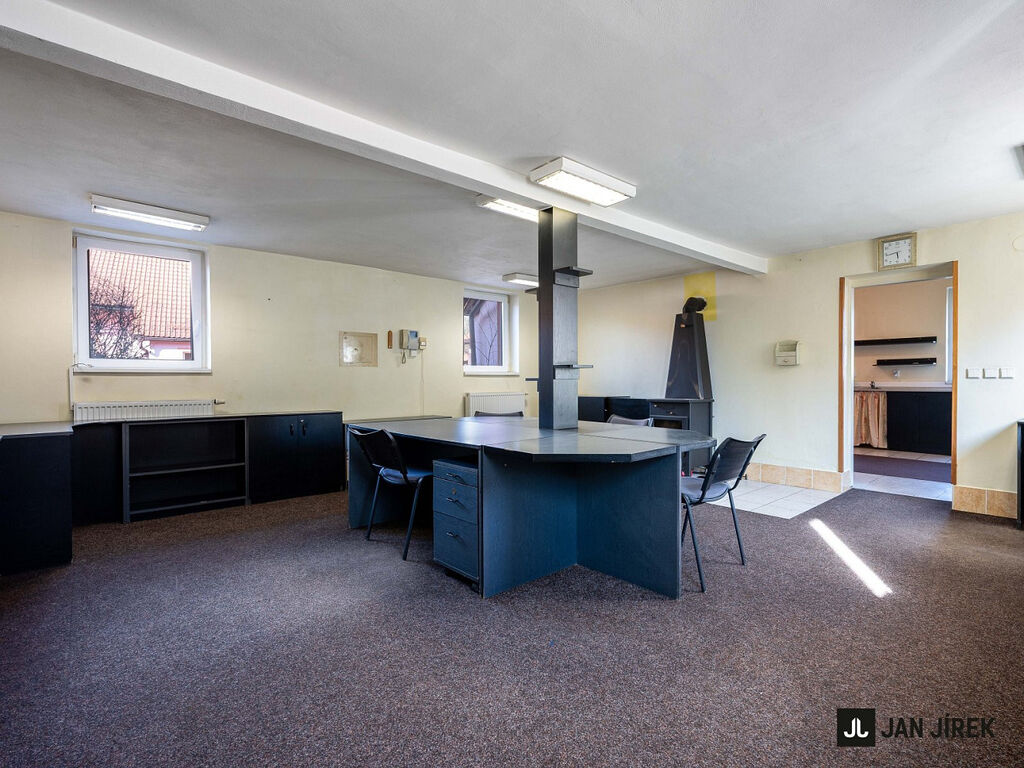 Protější části objektu byly užívány jako prostory pro podnikání a pro tento účel byly zkolaudovány. Zde najdete menší sklad, archív, kancelář se sociálním zařízením a sprchou, kuchyňku a tři pokoje v podkroví. K těmto prostorům patří i kryté stání a dílna. Nechybí ani rozsáhlá skladová budova s prostornými vraty, která nabízí potenciál pro další rozvoj a komerční využití.
