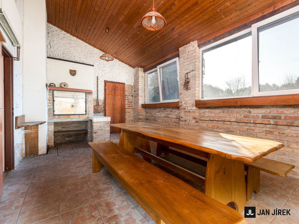 Pravou část objektu utváří dům pro rodinné bydlení o dispozici 3+kk a obytné ploše 66 m² a k němu přináležící společenská místnost vybavená krbovými kamny, vlastním sociálním zařízením, technickou místností a letní kuchyní s posezením. V zadní části budovy na vás čeká terasa s venkovním bazénem.