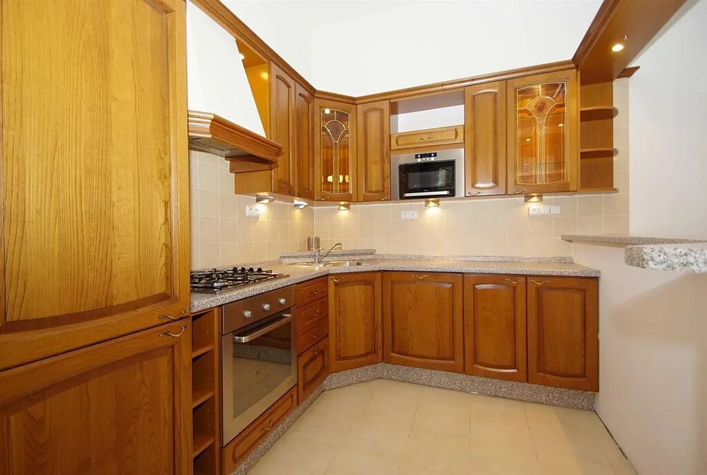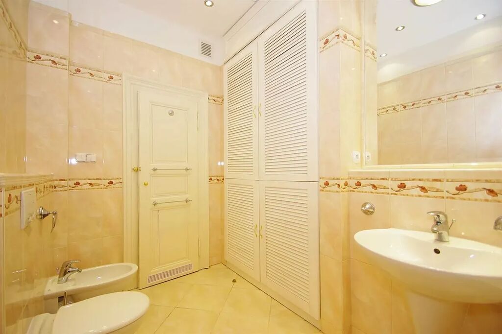Interiér bytu je zařízený a dispozičně nabízí vstupní předsíň se šatnou, prostorný obývací pokoj (45m2) s jídelní částí a kuchyní vybavenou spotřebiči (plynový sporák, trouba, lednice/mrazák, myčka), dále dvě samostatné ložnic (větší ložnice o velikosti 21m2; druhá ložnice 15m2 disponuje vlastní šatnou). Koupelna je vybavená vanou, toaletou a bidetem, v bytě je další oddělená toaleta. Podlahy: parkety v pokojích, a dlažba. Součástí vybavení: SAT přípojka, přípojka na internet (vodafone), a bezpečností alarm ( možnost napojení na bezpečnostní službu za extra poplatek).