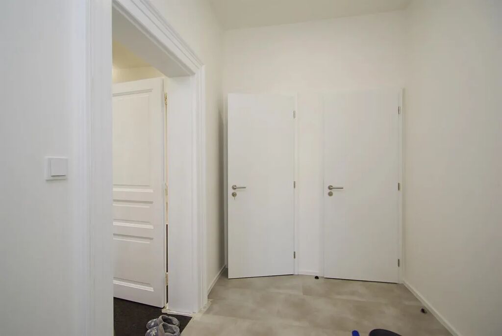 Prostory jsou nezařízené a dispozičně nabízí vstupní chodbu (6,9m2), dvě místnosti (24,7m2 a 25,2m2), jednu s čajovou kuchyňkou (12,5m2) vybavenou spotřebiči (varná deska, lednice, myčka), koupelnu (4,4m2) s toaletou a umyvadlem, samostatnou toaletu a úklidovou místnost. V prostorách jsou vinylové podlahy, keramická dlažba a koberce. Ve všech místnostech jsou rozvody sítí (zásuvky, internet, optický kabel).