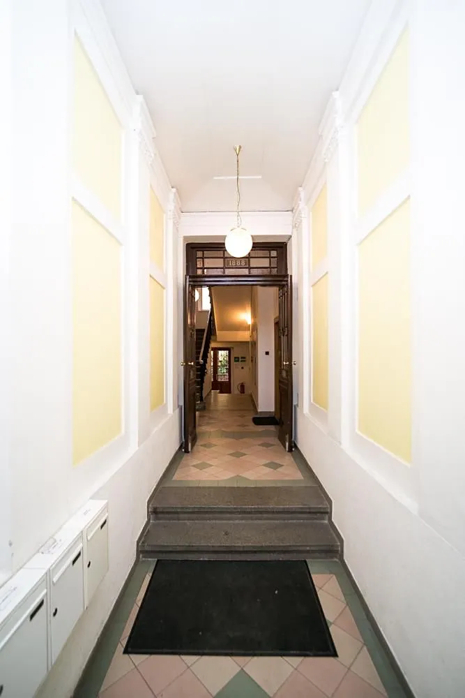 Nezařízený byt 1+1 (1 ložnice, 1 koupelna), o celkové obytné ploše 34,34 m2, je situován v 1.NP patře dobře udržované secesní rezidenční budovy s výtahem, v oblíbené lokalitě Praha 5 Smíchov nedaleko nábřeží Vltavy, v ulici V Lesíčku.