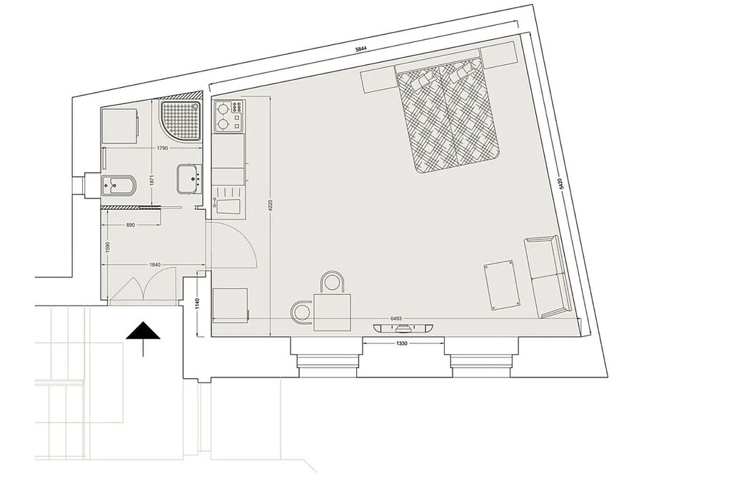 Zrekonstruované studio 1+kk, o celkové ploše 35m2, je situované do vnitrobloku, v přízemí reprezentativní budovy s výtahem, v oblíbené lokalitě Praha 2 Nové Město.