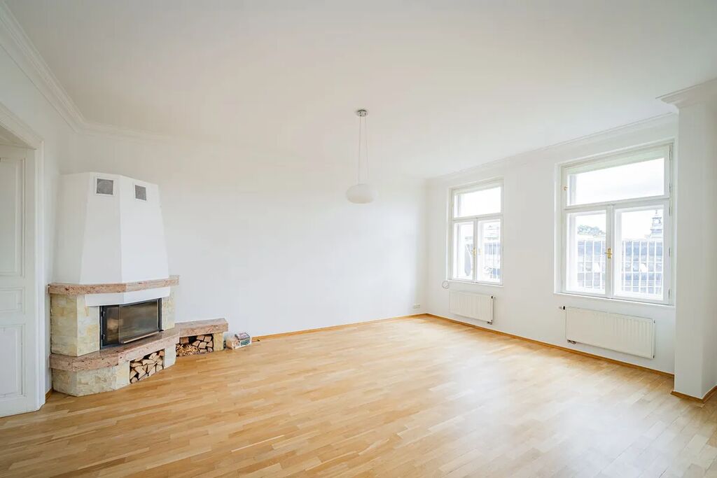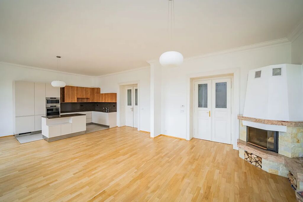 Zrekonstruovaný prostorný byt 4+kk (3 ložnice, 2 koupelny) s krbem, obytnou plochu 153 m2, je situovaný ve 4. patře zrekonstruovaného domu s výtahem, který se nachází v atraktivní lokalitě v blízkosti nábřeží Vltavy, na Novém Městě v Praze 2, ulice Na Moráni.