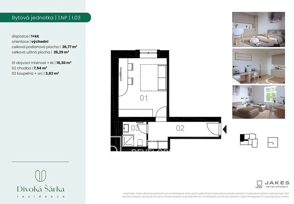 Pronájem bytu 1+kk, Praha - Liboc, Jenečská, 27 m2 (ID: 1850031)