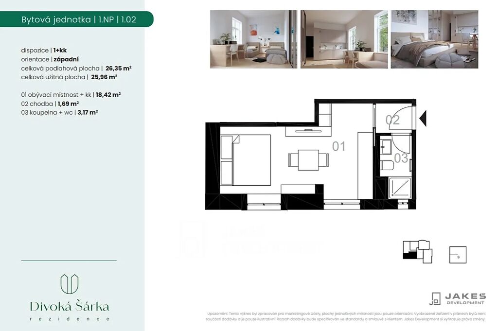 Pronájem bytu 1+kk, Praha - Liboc, Jenečská, 26 m2 (ID: 1850038)