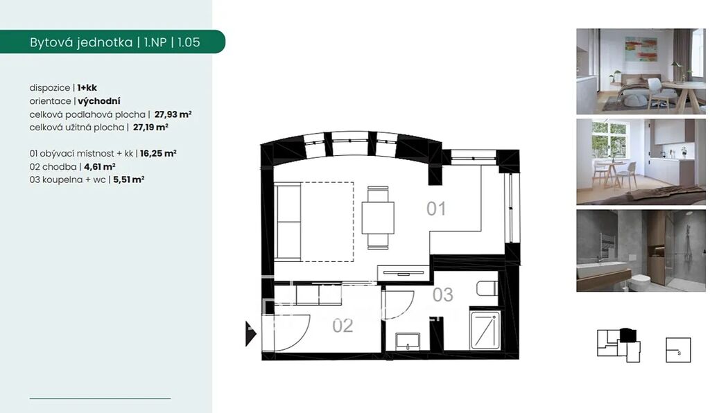 Nabízíme k pronájmu moderní a útulný byt 1+kk o podlahové ploše 28 m², který se nachází v 1. nadzemním podlaží s orientací na západ. Hledáme dlouhodobého nájemníka (nekuřák, bez exekucí).