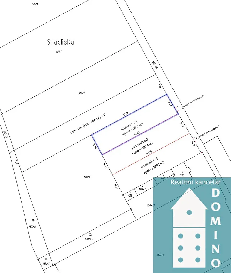 Výměra pozemku činí 1061 m2 ( rozměry pozemku jsou 63 m x 16, 66 m ). Pozemek přiléhá k místní komunikaci a je dle územního plánu označen jako ‘‘ plochy smíšené obytné venkovské“, na které je možno postavit mimo jiné i rodinný dům.