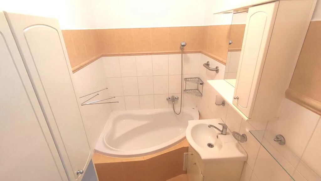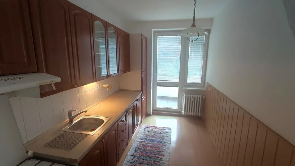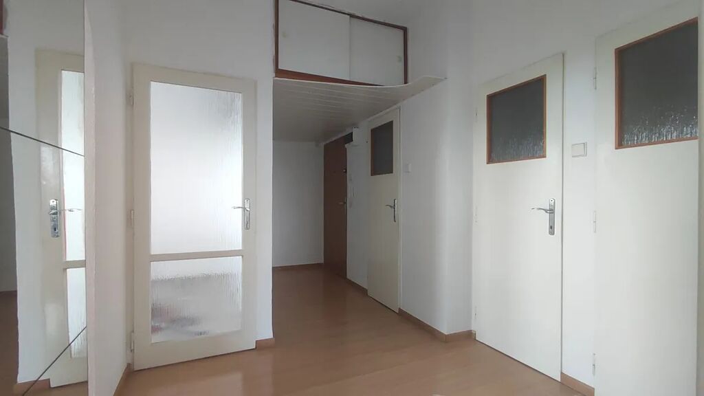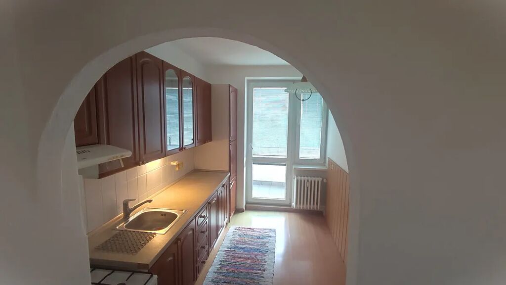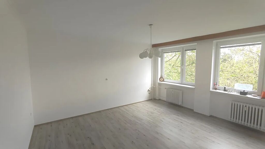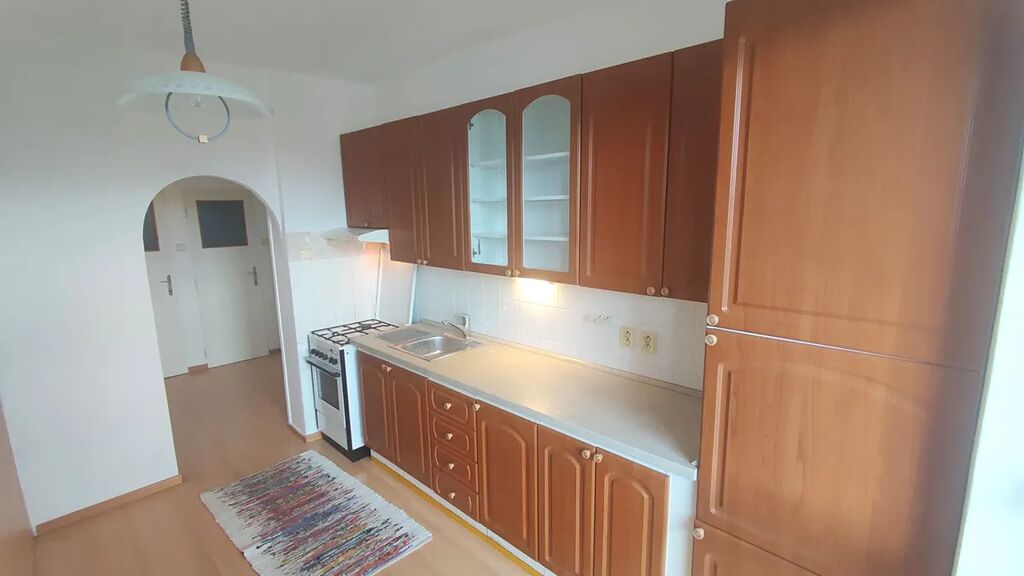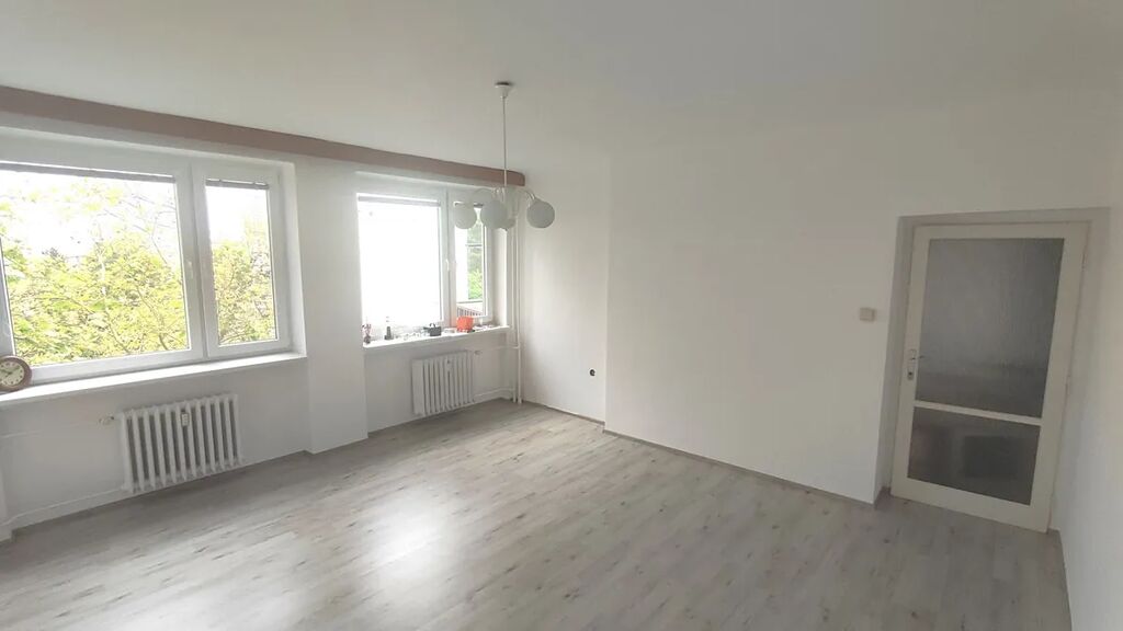 Byt se nachází ve 4./5. patře zděného bytového domu bez výtahu. Je po částečné rekonstrukci - nové laminátové podlahy, nová koupelna s WC, plastová okna ad. Byt je bez nábytku, vybaven pouze kuchyňskou linkou s kombinovaným sporákem, internetové připojení.
