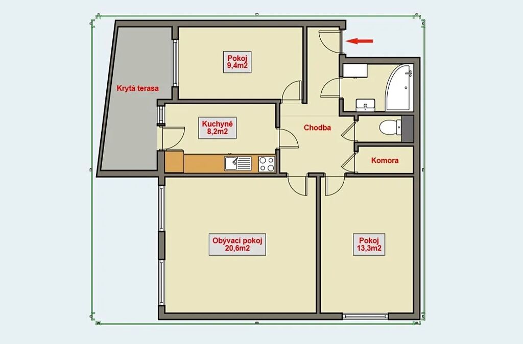 Celkem plocha bytu 75m2 (67m2 byt + 8m2 lodžie).