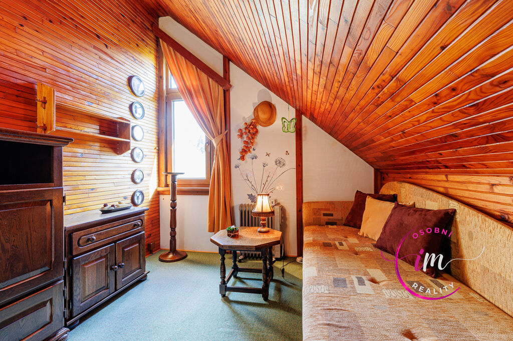 A co ještě Vám může chata nabídnout? Tři pokoje, kam se vejde pohoda, klid, láska a možná i nějaký dobře vychovaný pes.