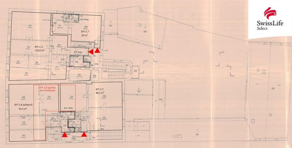Celková uřitná plocha celého objektu činí uctyhodných 1 250m. Část bytů je dnes pronajata za minimální nájemné.
