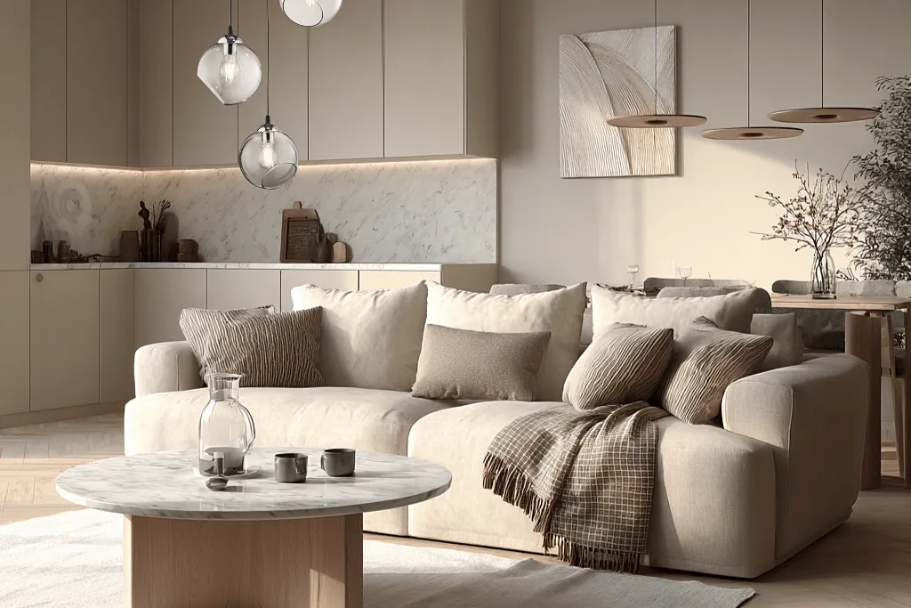 Prostorný obývací pokoj s kuchyňským koutem (26,86 m²)