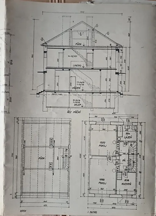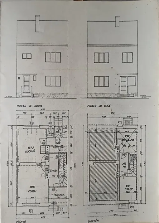 Stavba stojí na pozemku 207m2, zastavěná plocha je 70m2, na zahrádku připadá 104m2 a před domem je dalších 33m2. Dispozici domu 4+1 tvoří v přízemí prostorný obývací pokoj 33m2 s průhledem do kuchyně 9,4m2. Z obou těchto částí domu je možné vstoupit na zahradu orientovanou na sever. V druhém podlaží najdeme dvě dostatečně velké ložnice (obě 16,5m2) a další menší pokoj vhodný jako pracovna či pokoj pro hosty (9,4m2). Na tomto podlaží najdeme také koupelnu osazenou umyvadlem, sprchovým koutem a toaletou. Technické zázemí domu je pak situováno v suterénu domu, kde je instalován plynový kotel, jež zajišťuje vytápění a ohřev vody. Je zde také další toaleta a sprchový kout. Dům disponuje taktéž pochozí půdou, využívanou k ukládání sezónních věcí, nicméně i tato část se dá do budoucna využít pro bydlení, což usnadní již přivedené rozvody elektřiny, topení, vody i odpadu.