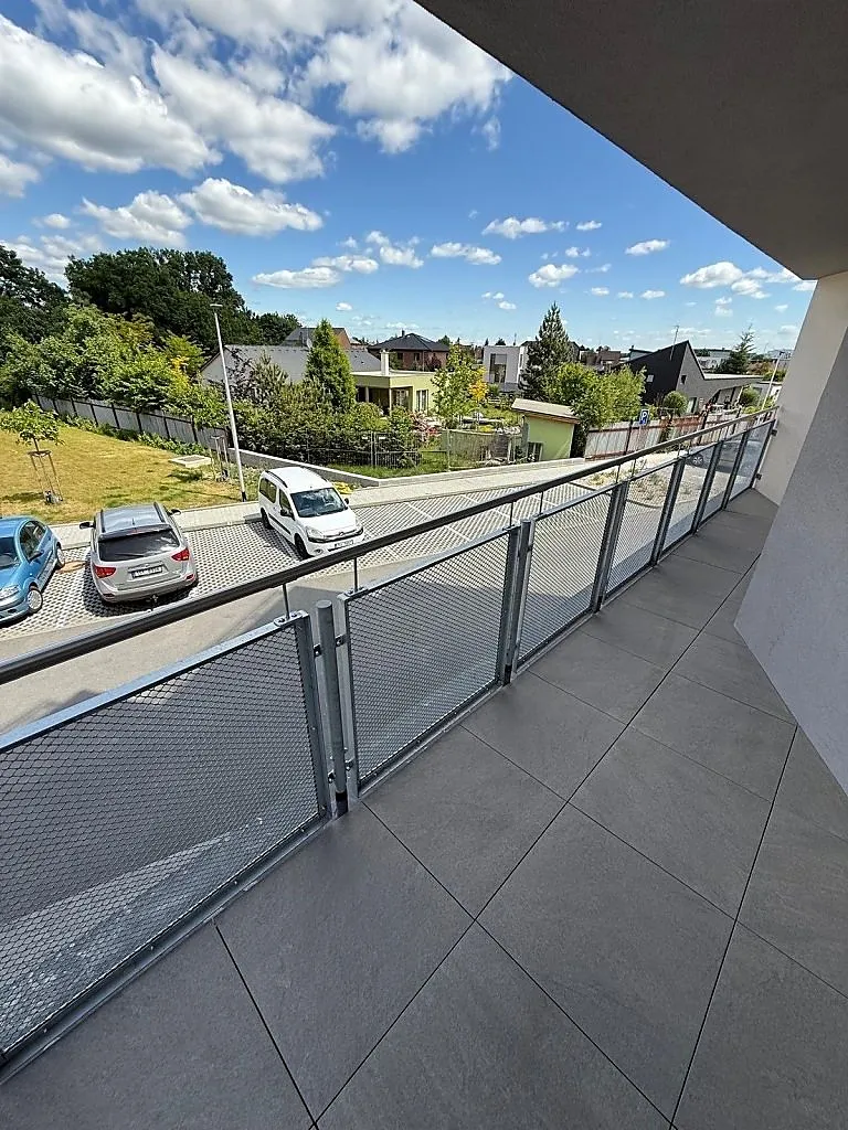 S garáže vstup přímo do chodby vedoucí k bytové jednotce s prostornou terasou 13 m2 s krásným výhledem do okolí a na okolní moderní zástavbu.