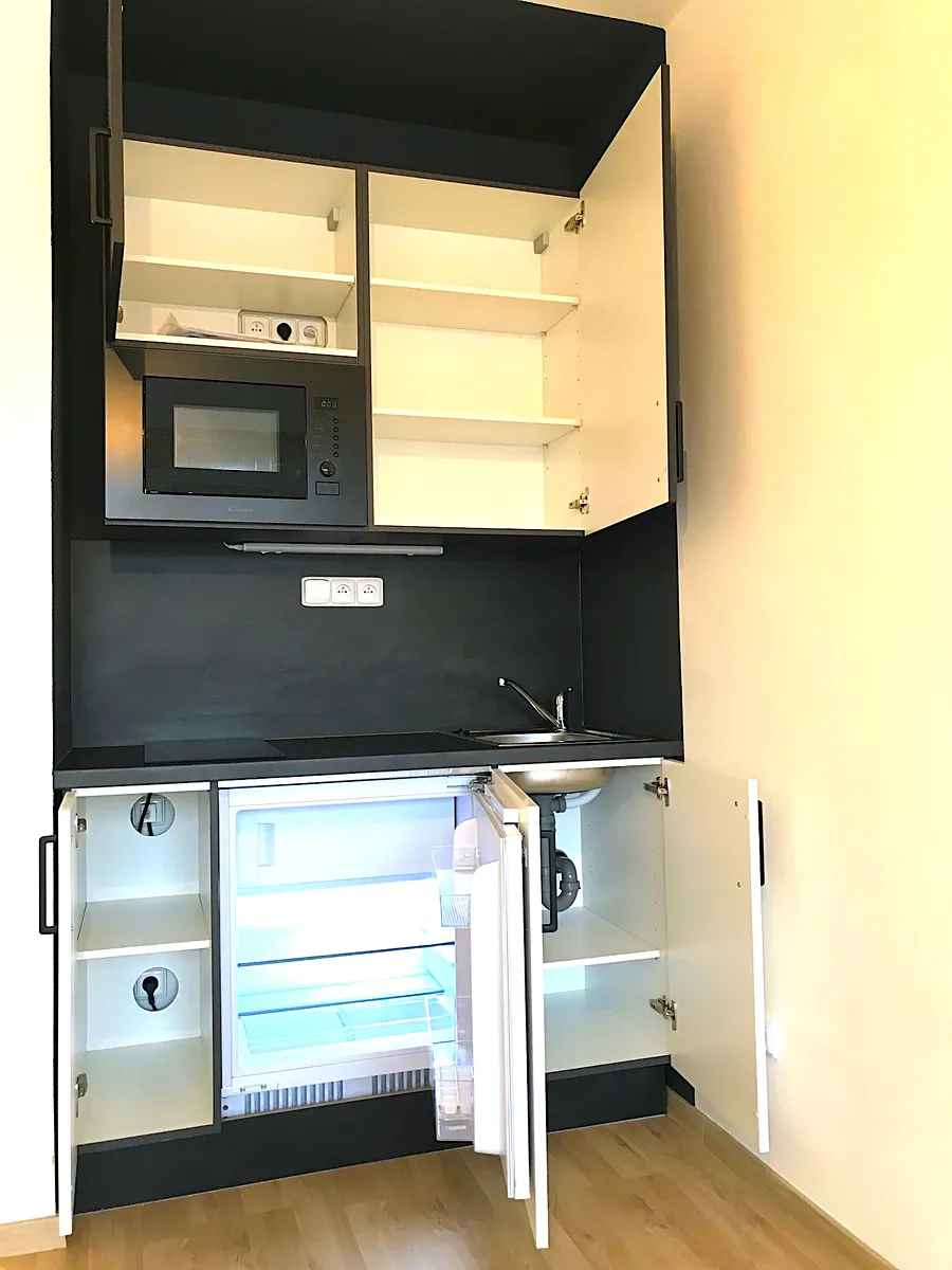 Dovolujeme si Vám nabídnout pod výhradním zastoupení, kompletně vybavené 1+kk o velikosti 22,8 m2 s navazující sklepní kójí 1,2 m2 umístěné v 1.NP uvnitř apartmánového komplexu s nonstop recepcí. Dispozice jsou následující: vstupní hala s navazující vestavěnou skříní, botníkem a dostatkem úložného prostoru, který byl vyhotoven na míru dle zadání investora v ceně 150tis., viz. foto s vizualizací vestavěné skříně. Dále navazuje místnost oddělené prostorné koupelny se sprch. koutem a vodovodní baterií, umyvadlem vč. vodovodní baterií, zrcadlem s osvětlovacím prvkem a mnoho dalších vestavěných prvků pod umyvadlem vč. úložných šuplíků, WC, pračka s vrchním plněním, topný žebřík, dále je v suterénu domu místnost kde je k dispozici sušička, není tedy nutné sušit prádlo uvnitř. Hlavní místnost s kuchyňským koutem, obsahující spotřebiče v podobě varné desky, dřezu s vodovodní baterií, ledničky s mrazničkou, mikrovlnka, osvětlení pracovní desky, úložné skříňky kuchyńské, součástí vybavení je i mobilní stolek jídelní vč. vesavěné postele s úložným prostorem, celá jedna stěna je tvořena úložným vestavěným prostorem vyhotoveným na míru. Jednotka je napojena na ústřední dodávku tepla a ohřev vody je centrálně návaznost radiátoru v obývací sekci s termostatickou hlavicí a topným žebříkem v koupelně. Předmětný dům nabízí nadstandardní služby pro rezidenty domu a nachází se poblíž nového kancelářského areálu Waltrovka, kde naleznete veškerou občanskou vybavenost. Samotný komplex se nachází v klidné bytové čtvrti Praze 5 Jinonice a je zabezpečen nonstop recepcí a kamerovým systémem, dále je v domě soustavně uklízeno a panuje zde čistota a pořádek. Vstup k jednotce je zajištěn přes hlavní vstup s recepcí popřípadně přes dělící boční vstup.