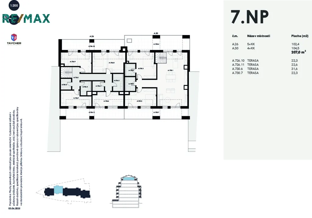 Nabízím k prodeji moderní byt 5+kk o velikosti 166 m² s prostornou terasou 55,8 m2.