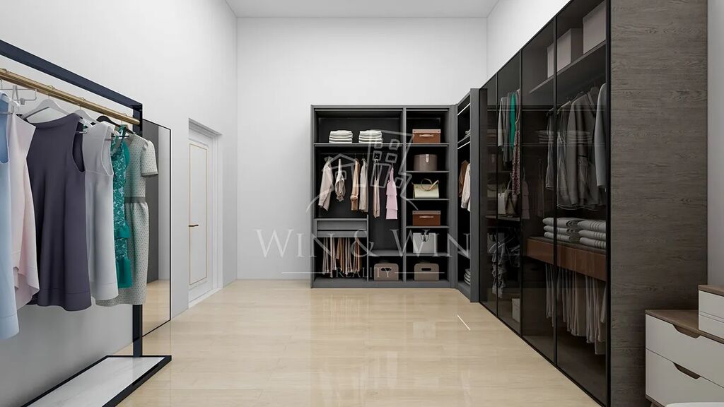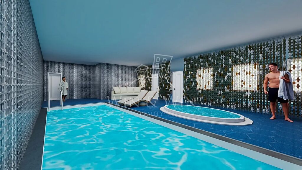 Vizualizace ukazuje již předběžnou podobu kompletní rekonstrukce jedné bytové jednotky. V dvorní přístavbě bazén a jacuzzi.