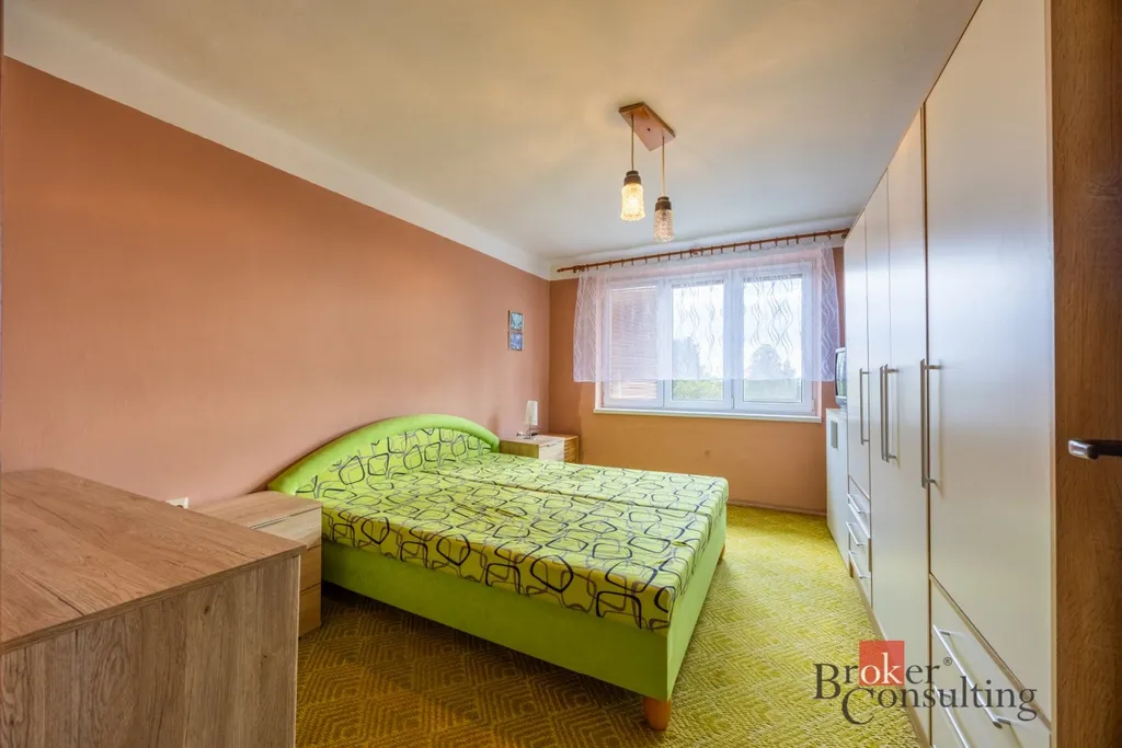 Dispozičně je řešen velmi prakticky – prostorný obývací pokoj, ložnice a kuchyň s jídelním koutem, koupelna s vanou a samostatné WC. K bytu náleží také sklepní kóje a možnost bezproblémového parkování přímo u domu.