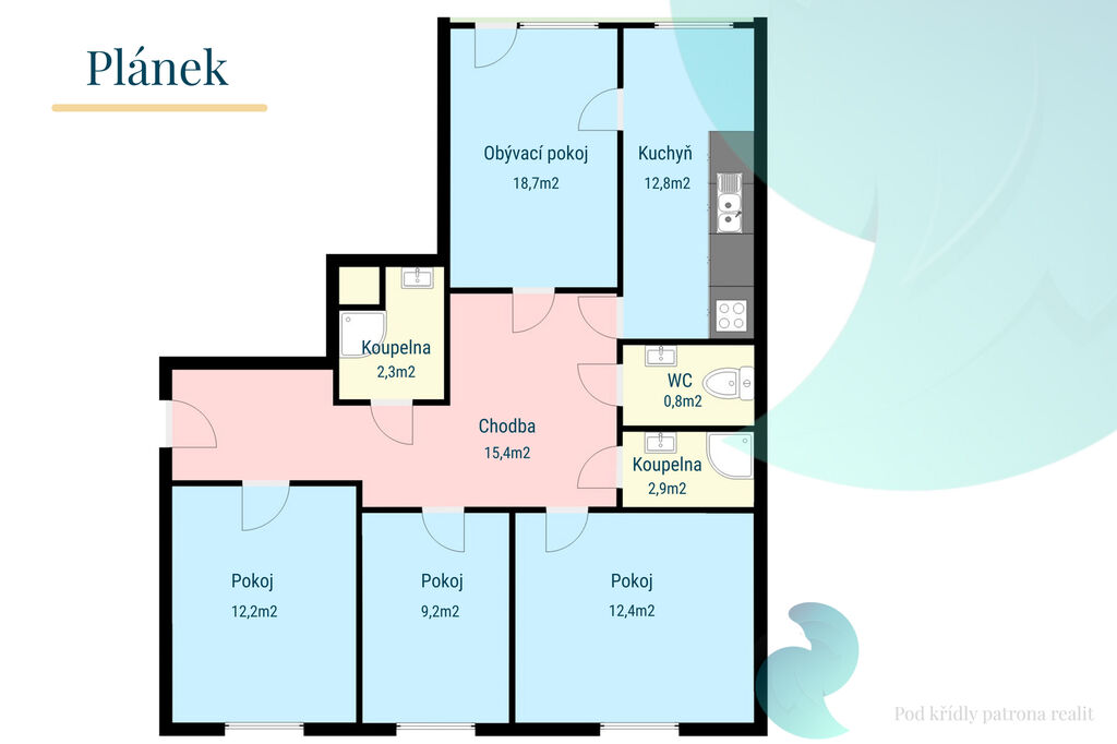 Byt o dispozici 4+1 se nachází ve zvýšeném přízemí domu s pěti podlažími a má praktické rozložení místností – do všech pokojů se vstupuje z centrální chodby, takže každý má své soukromí. To ocení nejen rodiny s dětmi, ale i ti, kdo potřebují prostor pro práci z domova nebo péči o seniora.