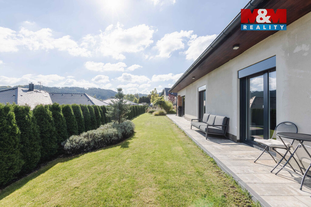 Nabízíme krásný, nadstandardně vybavený rodinný dům s vytápěnou dvougaráží, kolaudovaný v roce 2020, situovaný na okraji klidné obce Újezdec. Novostavba zaujme moderními technologiemi a promyšleným dispozičním řešením 4+kk + techn. místnost. Příjemně vás potěší koupelna s vestavěnou finskou saunou, centrální vysavač, zabezpečovací a kamerový systém. Všechna okna jsou vybavena trojskly a venkovními žaluziemi na el. ovládání, což zaručuje ideální tepelný komfort i soukromí. Veškeré technologie domu lze pohodlně ovládat na dálku přes mobilní aplikace. Součástí je i systém pro mineralizaci vody, zajišťující její vysokou kvalitu. Vytápění zajišťuje tepelné čerpadlo s podlahovým topením a možností individuální regulace. Z prostorného obývacího pokoje je přímý vstup na terasu s úchvatnými výhledy do přírody. Okrasná zahrada je vybavena zavlažovacím systémem. Nemovitost představuje komfortní a technologicky vyspělé bydlení pro rodinu, která hledá klid a moderní styl života v dosahu Klatov.