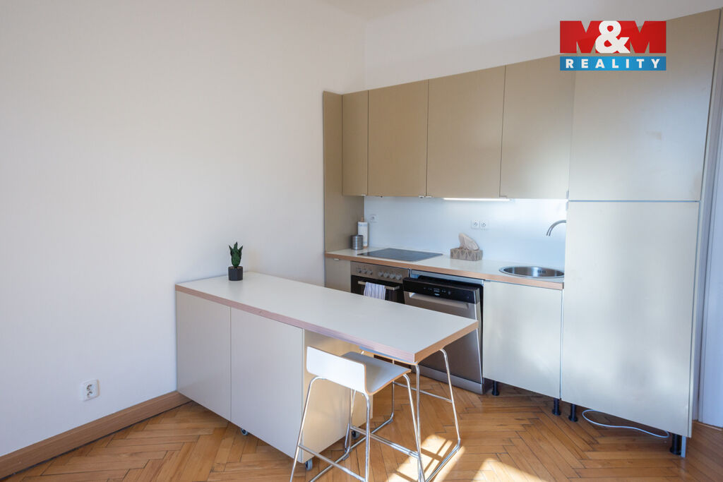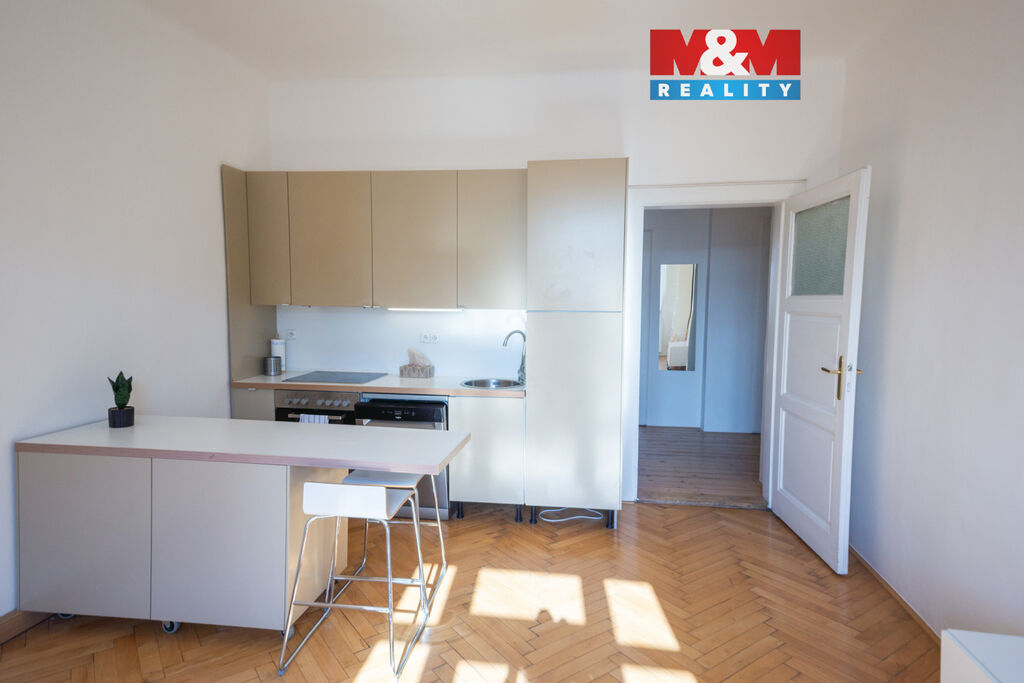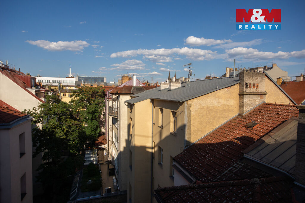 Nabízíme k dlouhodobému pronájmu byt 2+kk v 6.NP činžovního domu v rušné části Vinohrad. Byt je vybavený nábytkem (dvoulůžko, prostorná šatní skříň, komoda, psací stůl), kuchyňskou linkou se spotřebiči (lednička, myčka, el. varná deska, trouba) a barovým jídelním stolem. Vytápění bytu a ohřev vody je zajištěn vlastním plynovým kotlem. Byt je dostatečně světlý díky orientaci na východ/západ a nabízí zajímavý výhled na střechy Nového Města a panorama Pražského hradu. V domě je instalován optický kabel. Lokalita nabízí množství obchodů, služeb, kaváren, restaurací. Oblíbený městský park Riegrovy sady je v docházkové vzdálenosti. Výborná dostupnost MHD - bezprostřední blízkost stanice metra I.P.Pavlova a Muzeum.