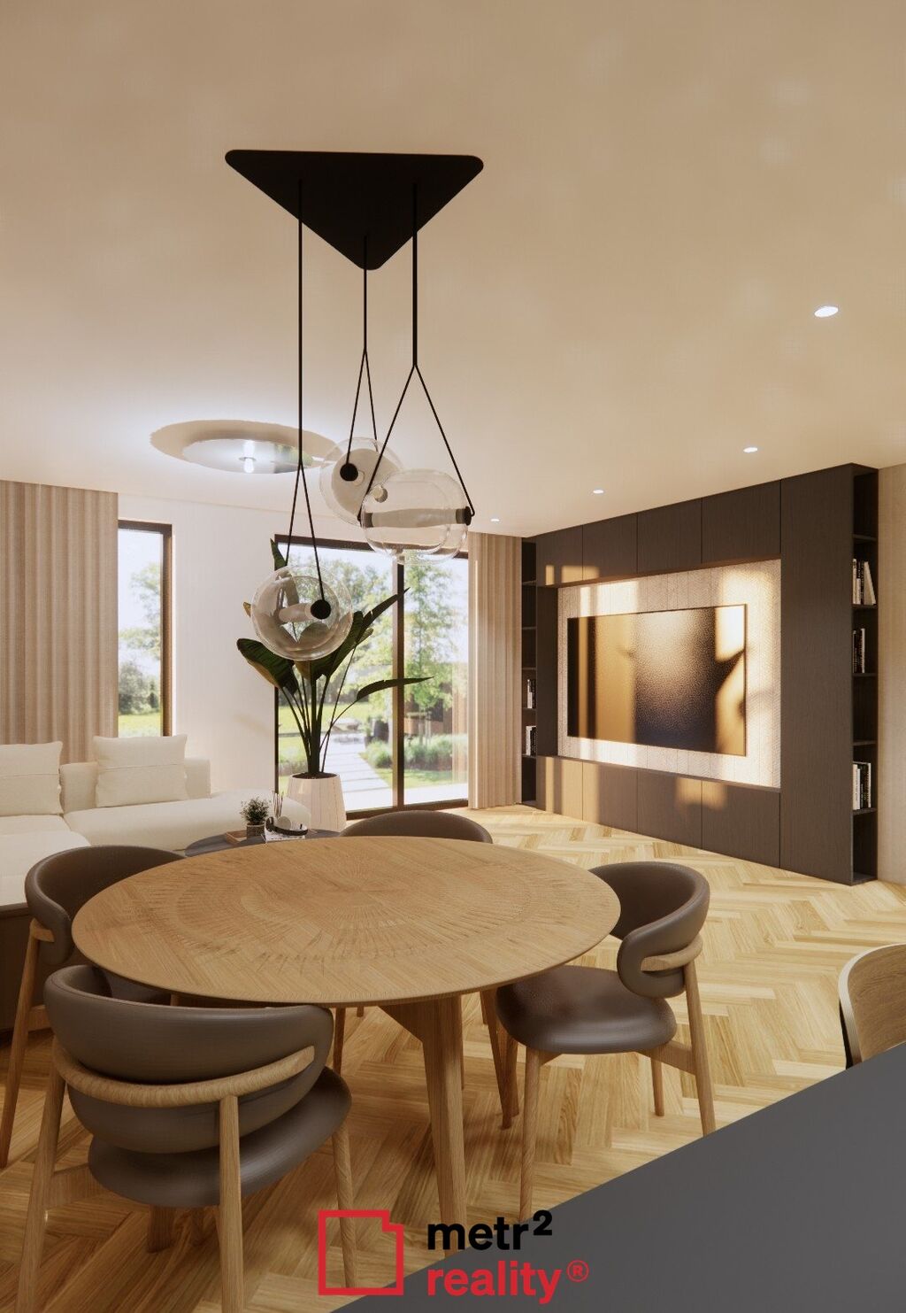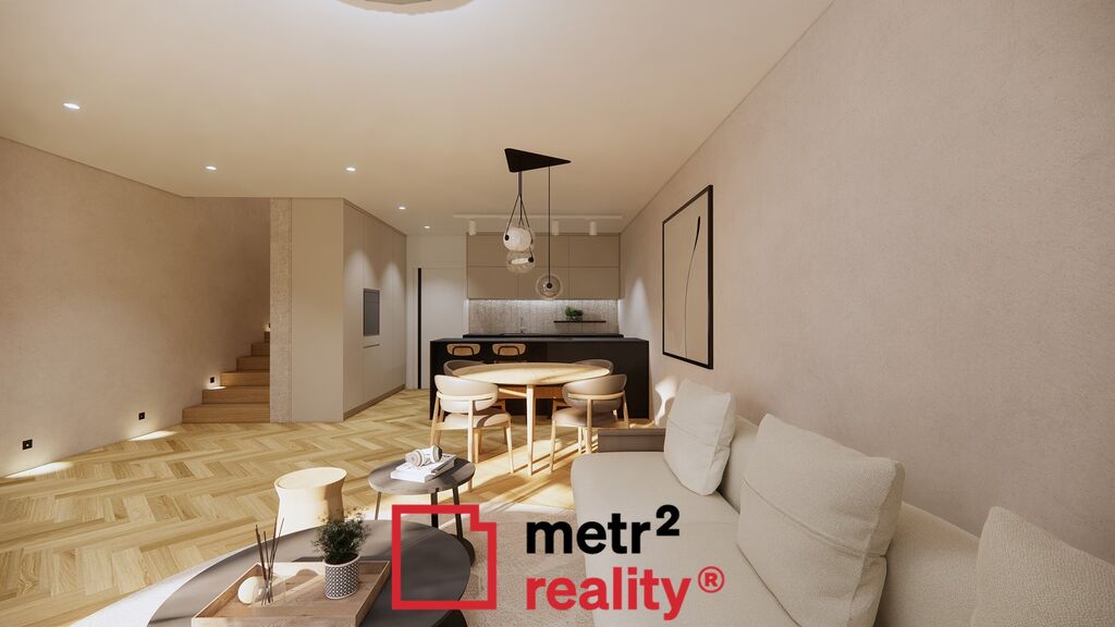 Představujeme Vám luxusní novostavbu rodinného domu o dispozici 5+kk užitné ploše 149,7 m², která se nachází na pozemku o velikosti 272 m² v klidné a žádané lokalitě městské části Olomouc – Slavonín, na ulici Jižní. Dům je navržen s důrazem na moderní technologie i precizní zpracování. Plastová okna se sedmikomorovým rámem v elegantním černém provedení spolu s elektrickými předokenními žaluziemi ve všech místnostech zajišťují vysoký komfort a energetickou úspornost. Vytápění je řešeno podlahovým teplovodním systémem napojeným na tepelné čerpadlo vzduch-voda, jehož vnitřní jednotka se nachází v technické místnosti a venkovní na střeše. Ve většině obytných prostor je připravena instalace klimatizačních jednotek, což umožňuje individuální regulaci teploty v letních měsících. Interiér je vybaven kvalitními lepenými vinylovými podlahami, schodiště má nášlapy z dubového masivu a dveře jsou osazeny bezfalcovou obložkou pro čistý design. Koupelna je zařízena moderním obkladem, který podtrhuje celkově nadstandardní úroveň domu. Fasádu tvoří kombinace točené omítky, thermowood obkladu a lakovaného plechu, což dodává domu osobitý a současný vzhled. Součástí domu je terasa o ploše 18 m², která navazuje na obytný prostor a poskytuje příjemné místo pro odpočinek či setkávání s přáteli. K dispozici jsou dvě krytá parkovací místa přímo na pozemku. Dům je řadový (krajní), oplocený a napojený na veřejnou kanalizaci, dešťová voda je efektivně svedena do retenční nádrže. Lokalita nabízí plnou občanskou vybavenost s dobrou dostupností do centra Olomouce. V těsné blízkosti najdete školu, nákupní centrum OC Haná, supermarket, restaurace, sportovní i rekreační zařízení a rychlý přístup na MHD. Díky blízkosti obchodního centra, aquaparku a dalších služeb je toto místo ideální volbou pro mladé lidi nebo páry, kteří hledají pohodlné a moderní bydlení v klidném prostředí a zároveň s výhodami městského života. Pro více informací o této nemovitosti nebo sjednání prohlídky nás prosím kontaktujte