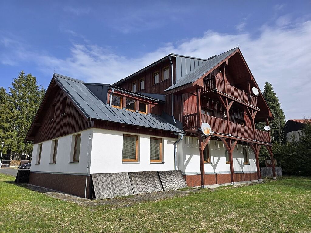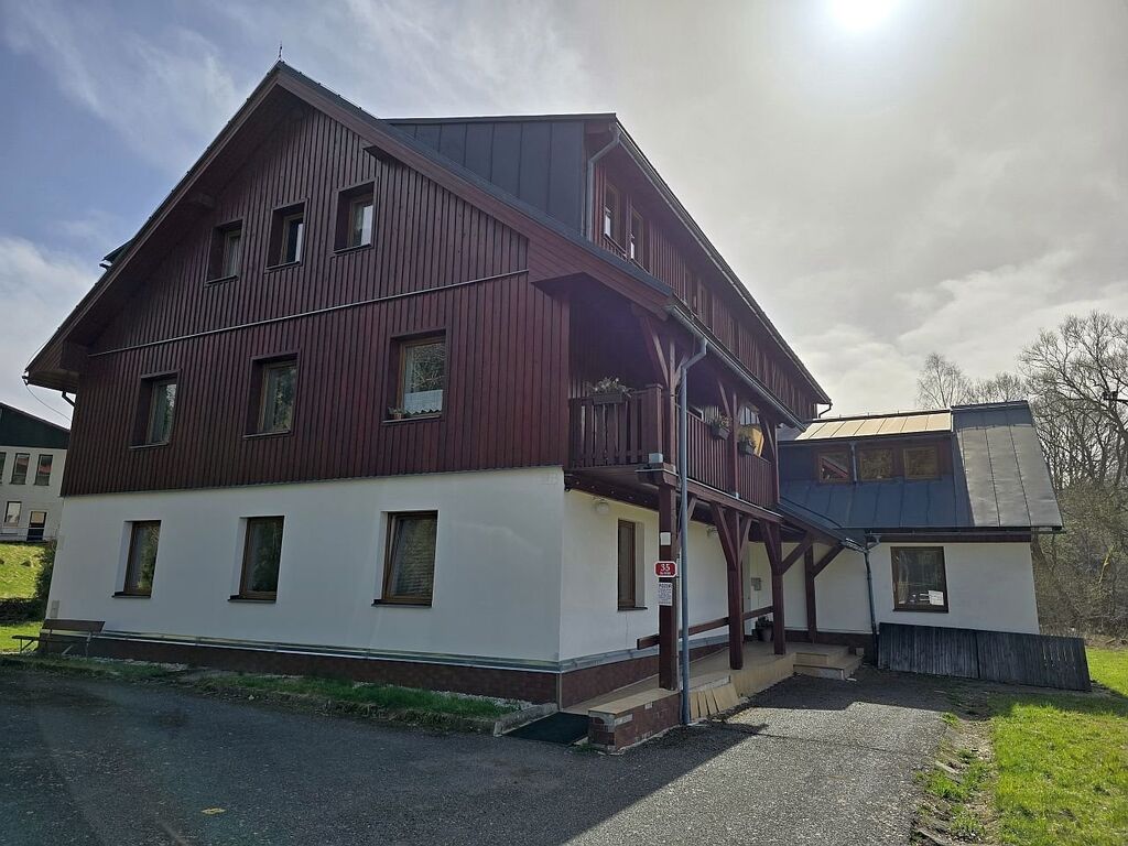 Prostorný byt se nachází v prvním nadzemním podlaží typického horského domu na klidném místě Železné Rudy.