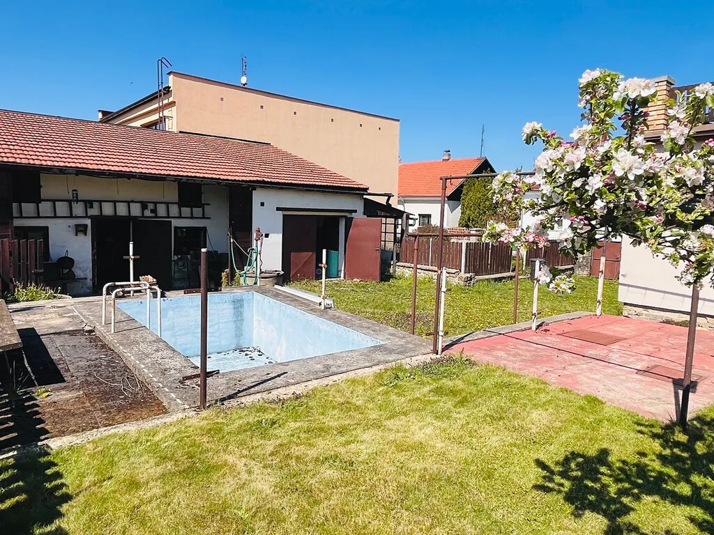Další skvělou výhodou nabídky je přiléhající veliký dvůr s vedlejšími stavbami a garáží, nebo rovinatá udržovaná zahrádka, která je ideální pro pěstování zeleniny a květin, nebo relaxaci. Na dvoře najdeme dále studnu a polozapuštěný betonový bazén, nechybí retenční nádrž.
