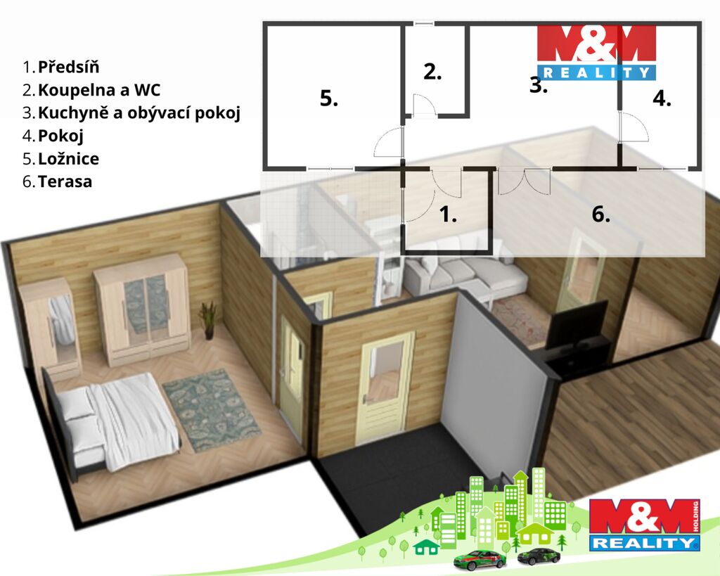 Nabízíme k prodeji v klidné části Krupky modulovou dřevostavbu o rozměrech 12,4 x 4,2 x 3,40 metrů.