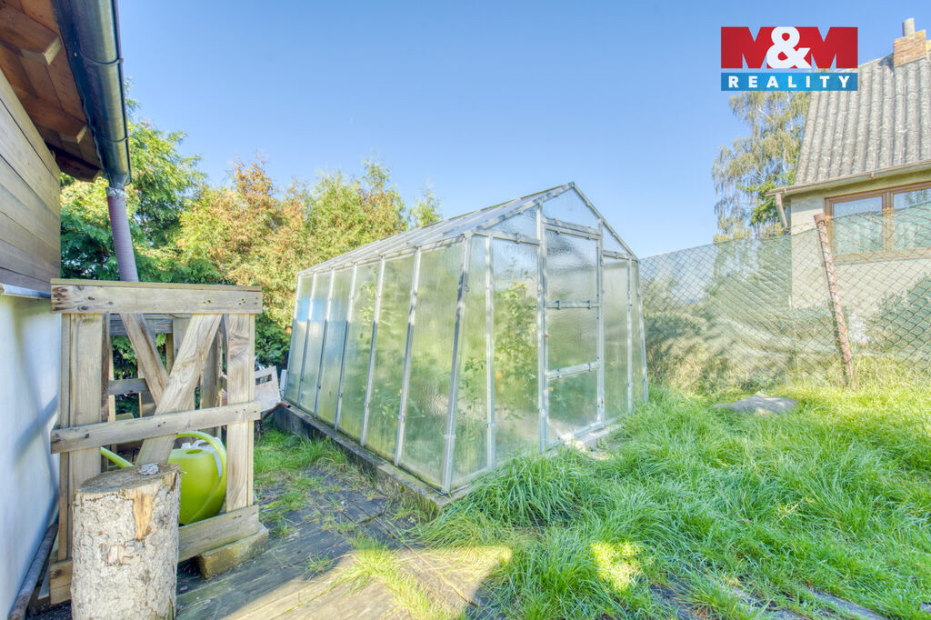 Na pozemku se nachází nezapsaná stavba o ploše cca 30 m2 a skleník, ale také několik ovocných stromků a keřů.