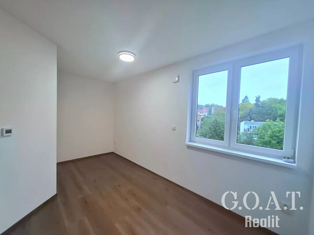 Byt tvoří prostorný obývací pokoj s kuchyňským koutem, ze kterého je vstup na balkon o velikosti 8 m². Kuchyňská linka značky Oresi je vybavená spotřebiči – myčkou, lednicí, troubou a indukční varnou deskou. U vstupu do bytu se nachází samostatná toaleta, dále koupelna s vanou, umyvadlem a elektrickým bojlerem pro ohřev teplé vody. Součástí bytu jsou tři neprůchozí pokoje, které lze využít jako ložnici, dětské pokoje či pracovnu.