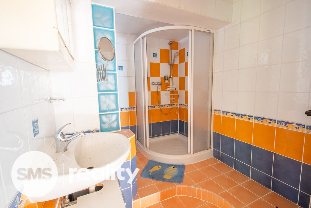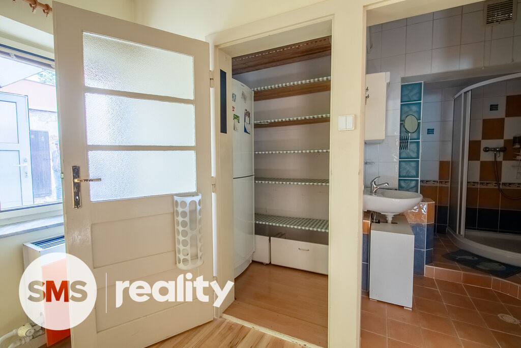 Z kuchyně se dále dostanete do koupelny, kde je také toaleta, spíž (s lednicí) a místo pro uložení věcí .