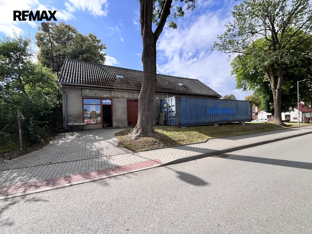 Jedná se o prodej objektu občanské vybavenosti v minulosti sloužícího jako prodejna potravin, následně upraveného na dílnu a sklady. Objekt je tvořen hlavním prostorem 45,63m2 s el. ovládanými vjezdovými vraty šíře 2,55 a výšky 2,51m2, dále skladem 24,60m2, spojovací chodbou 11,90m2, skladem 20m2, menším skladem 4,84m2, koupelnou 4,77m2, místností 2,26m2, WC 1,08m2, nákladovou rampou v zadní části 7,00m2 a skladem z rampy 5,83m2. Stropy mají výšku 2,91m2. Objekt je napojen na obecní vodovod, střešní krytinu tvoří vlnitý eternit. Okna jsou v části nova Euro, ostatní původní dřevěná. Podlahy tvoří beton v částech s dlažbou. K objektu je zpracován projekt pro rodinný dům 4+kk s příslušenstvím bez využití obytného podkroví. Cena zahrnuje kontejner před objektem o rozměru 12x2,5m. Pro více informací volejte makléře nabídky.