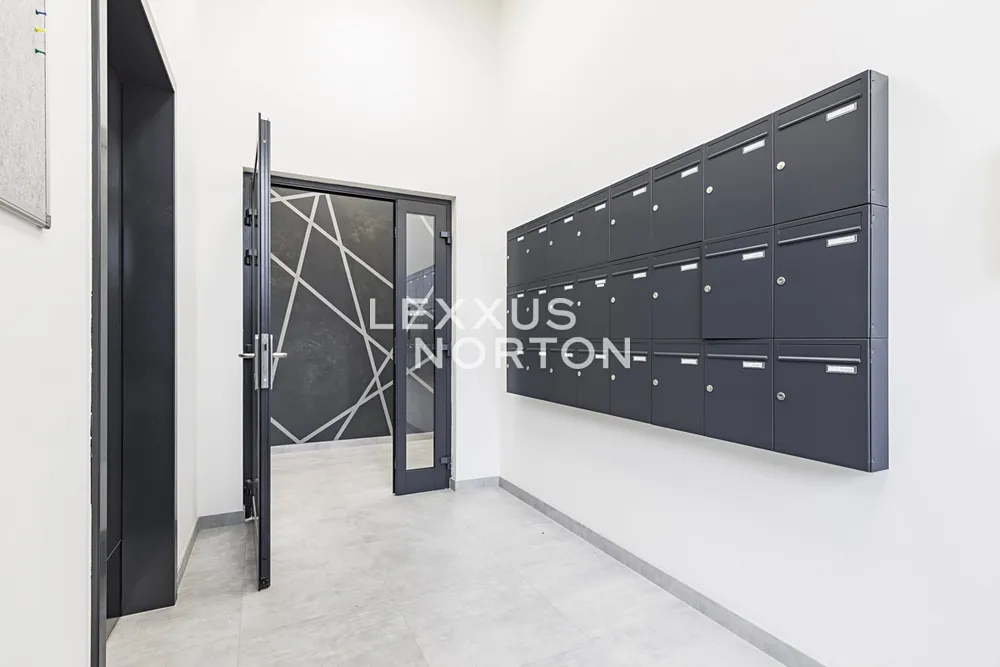 Tento světlý a prostorný byt k pronájmu nabízí komfortní a moderní bydlení. Při vstupu vás přivítá vstupní chodba s vestavěnou skříní, která poskytuje dostatek úložného prostoru. Hlavní obytný prostor zahrnuje obývací pokoj propojený s plně vybaveným kuchyňským koutem s přímým vstupem na terasu, ideální pro relaxaci a venkovní posezení. Kuchyň je zařízena moderními spotřebiči (indukční deska, parní trouba, lednice, mrazák, mikrovlnná trouba a myčka nádobí). Byt disponuje jednou ložnicí, která také nabízí přímý vstup na terasu, která zajišťuje dostatek světla. Koupelna je vybavena vanou a toaletou. Navíc je byt vybaven chytrou domácností.