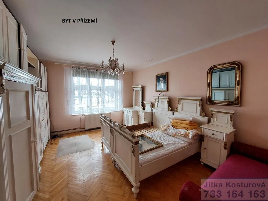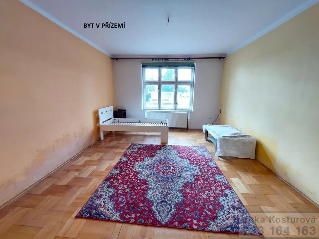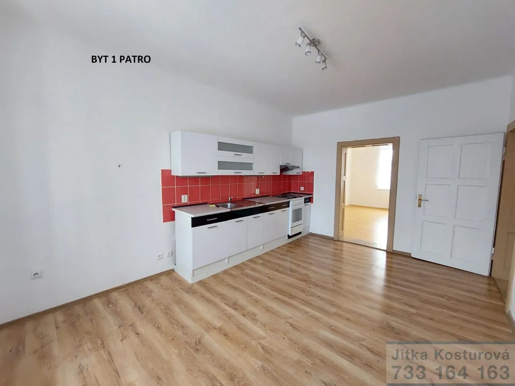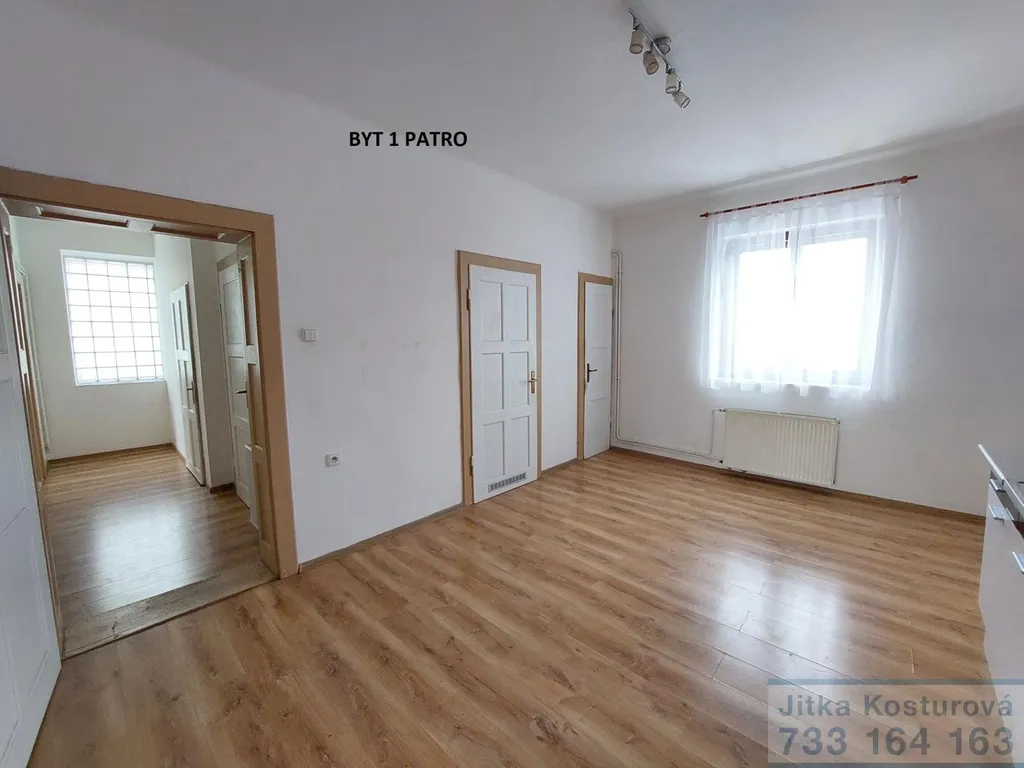 V 1 patře je k dispozici bytová jednotka o dispozici 2+1 s celkovou výměrou cca 66 m2, po rekonstrukci před 10 lety, a to včetně rozvodů vody, elektřiny a topení. V celém bytě je položena laminátová podlaha, koupelna a WC je dlažba ( samostatný plynový kotel). Vstupní chodba, samostatné 2 pokoje a kuchyň.