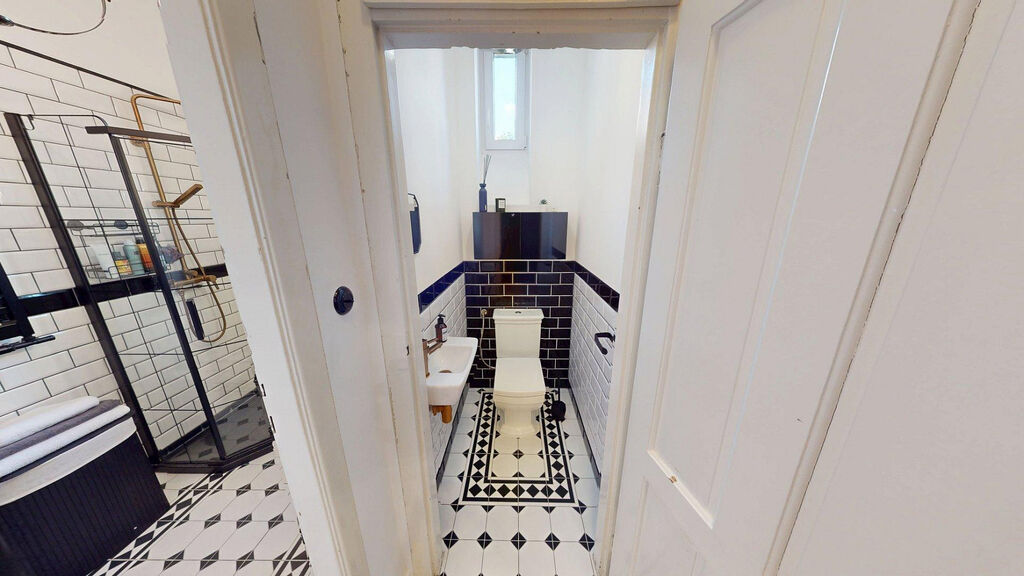 Součástí bytu je i malý balkon orientovaný do klidného dvora, ideální pro ranní kávu nebo odpočinek po práci. Přístup vede po stylovém schodišti, které samo o sobě dotváří kouzlo celé nemovitosti.