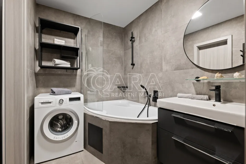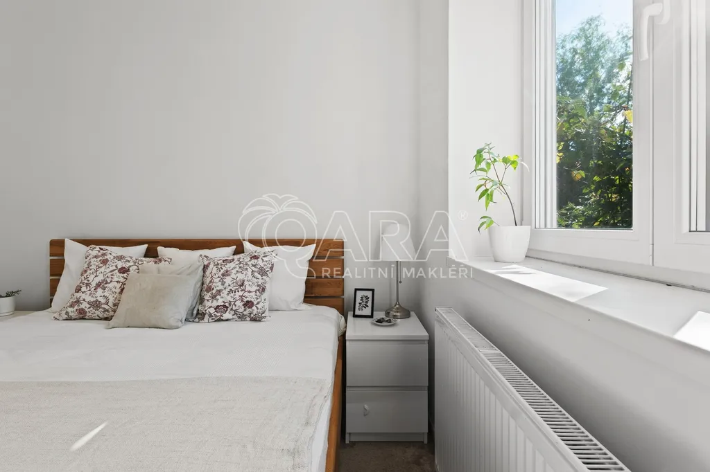 Byt má další 2 samostatné pokoje. Jeden je hlavní ložnicí – orientovanou do vnitrobloku a druhý je dětský pokoj orientovaný na východ, který je zároveň propojen s druhou předzahrádkou o velikosti 24 m². Koupelna prošla rekonstrukcí před třemi lety a je vybavena rohovou vanou se sprchovou zástěnou a závěsným WC. Součástí je i komora v bytě a další na patře před bytem.