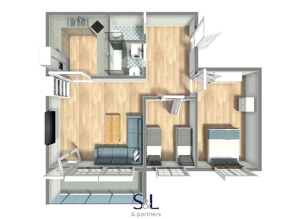 Součástí bytu je zasklená lodžie s výhledem do okolí, která poskytuje klidný prostor pro odpočinek. Dispozice bytu je prakticky řešená a nabízí dostatek prostoru jak pro rodinu, tak i pro jednotlivce, kteří hledají moderní městské bydlení s vynikající dostupností.