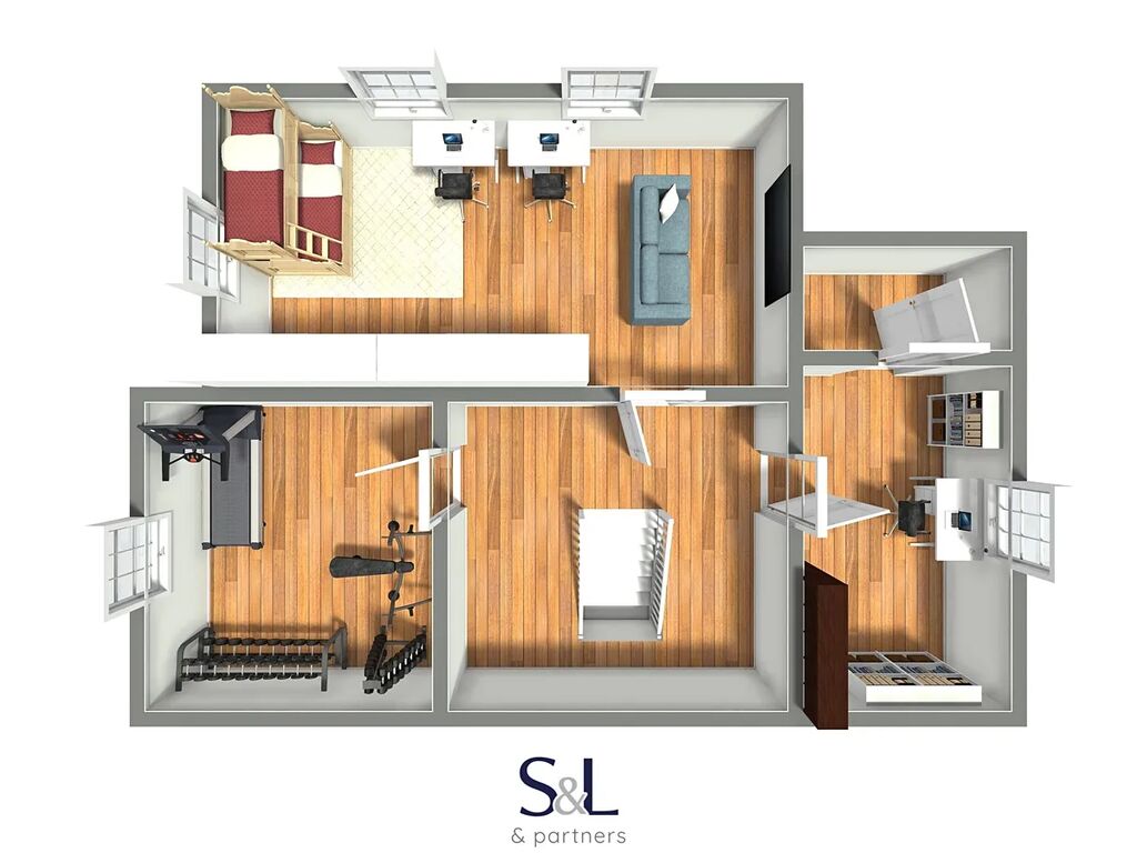 2. patro: 3 pokoje, dílna