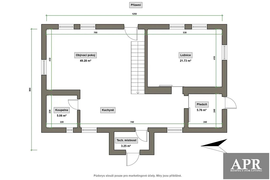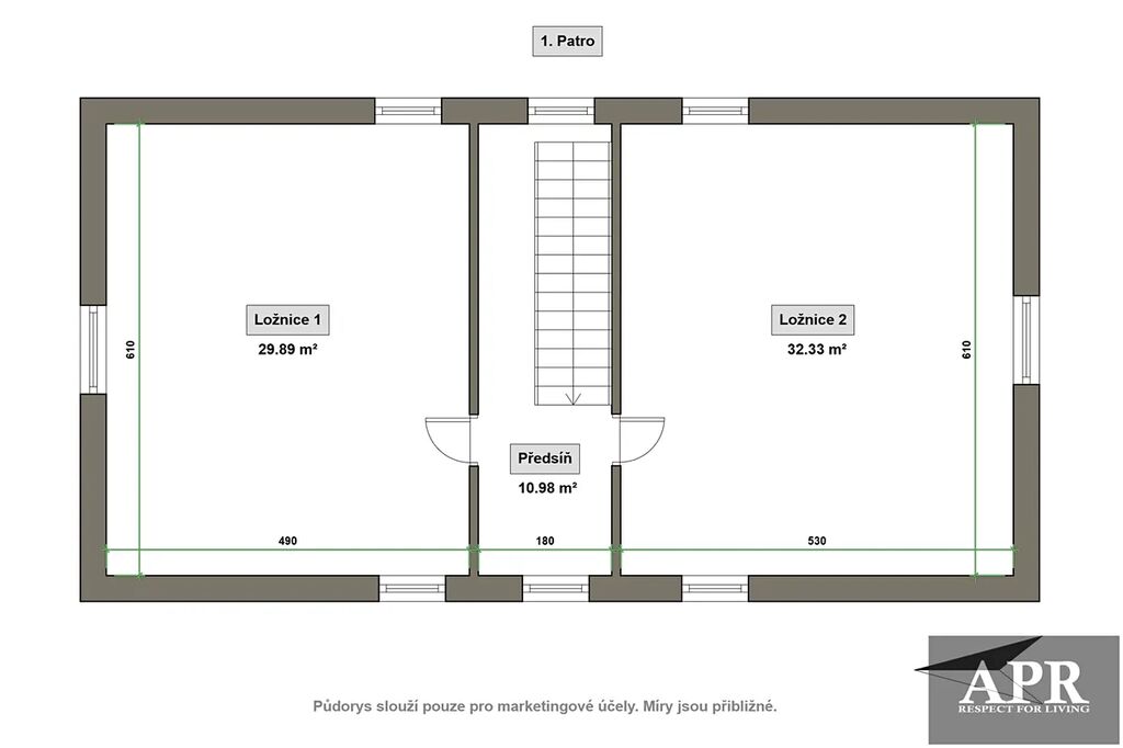 2:NP ( 73,2 m2 ) dvě samostatné ložnice, předsíň