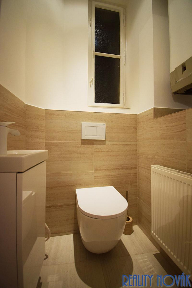 Byt k pronájmu je po kompletní velmi zdařilé rekonstrukci se zachovanými prvky původního zdobení a vybavení, které je také po renovaci. Nemovitost disponuje vstupní chodbou, obývacím pokojem s malým balkónem, kuchyní s plně vybavenou novou kuchyňskou linkou (indukční deska s odsavačem par, trouba, lednice s mrazákem, myčka nádobí a pračka), dvěma ložnicemi, 1 koupelnou (vana) a samostatnou toaletou, byt má vlastní ohřev vody a vytápění, který zajišťuje plynový kotel.