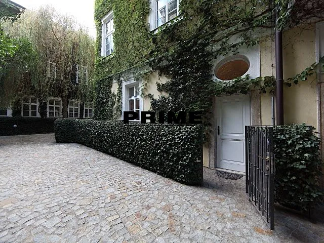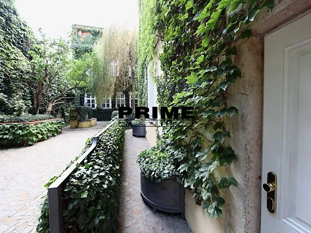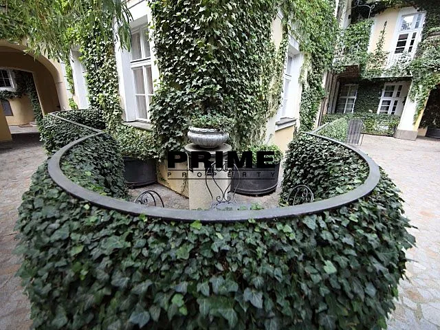 Nájemce neplatí provizi. Romantický, jihovýchodně orientovaný, 1 ložnicový, zařízený byt se 2 koupelnami k pronájmu, 2+kk, 92m2, s privátní terasou se zahrádkou o výměře 20m2, situovaný v přízemí kompletně zrekonstruovaného historického bytového domu s výtahem a malebným zeleným nádvořím s fontánami.