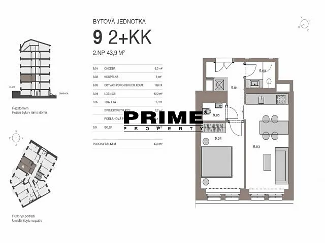 Dispozice bytu: vstupní předsíň, obývací pokoj s moderní, plně vybavenou kuchyňskou linkou se všemi spotřebiči, ložnice, koupelna (sprchový kout a umyvadlo) a samostatné WC.