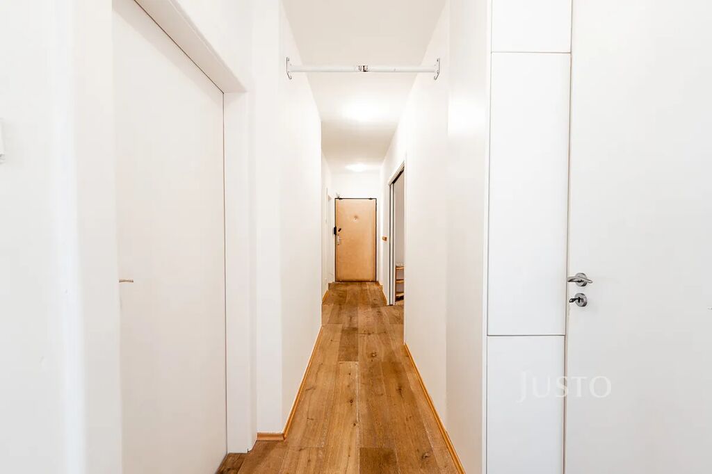 - V bytě je dřevěná dubová podlaha a parkety